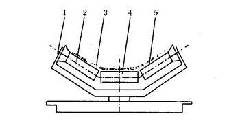 (4)在固定式托架的結(jié)構(gòu)中,將槽形托輥兩側(cè)托輥的外端向輸送帶運(yùn)行方向偏斜